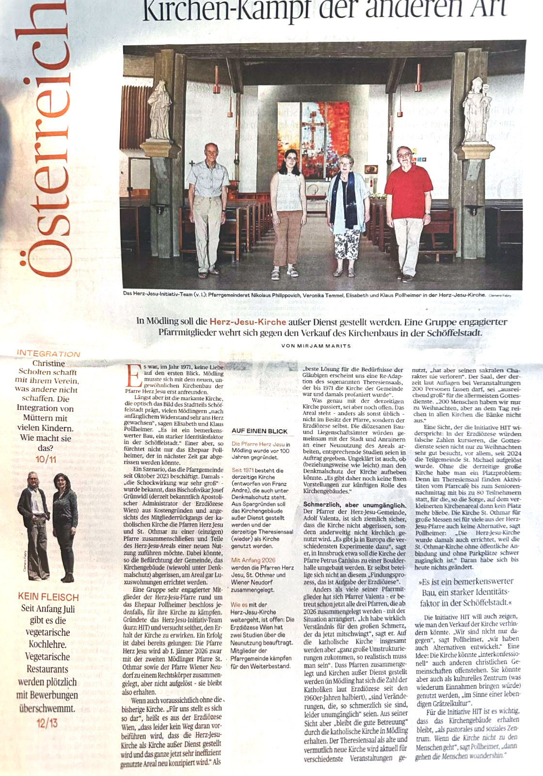 Der Artikel kann hier abgerufen werden: https://www.dersonntag.at/artikel/pfarrzusammenlegung-moedling